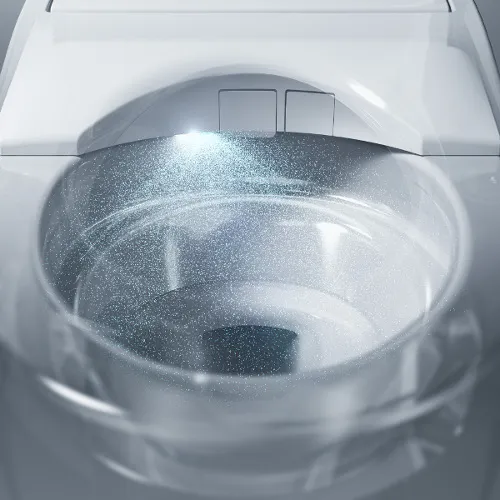 Bei EWATER+ handelt es sich um speziell aufbereitetes Wasser, das ein hohe antibakterielle Wirkung hat. Es entsteht durch Elektrolyse der Chloridionen im Leitungswasser und enthält keinerlei Chemikalien oder Reinigungsmittel. Im Laufe der Zeit wandelt sich EWATER+ wieder in normales, umweltfreundliches  Leitungswasser zurück. Die Stabdüse wird nach jeder Nutzung von innen und außen mit EWATER+ gereinigt. Eine Besonderheit ist, dass sich die Düse regelmäßig selbsttätig reinigt, auch wenn das WASHLET über einen längeren Zeitraum nicht benutzt wird, um konstante hygienische Bedingungen zu gewährleisten.