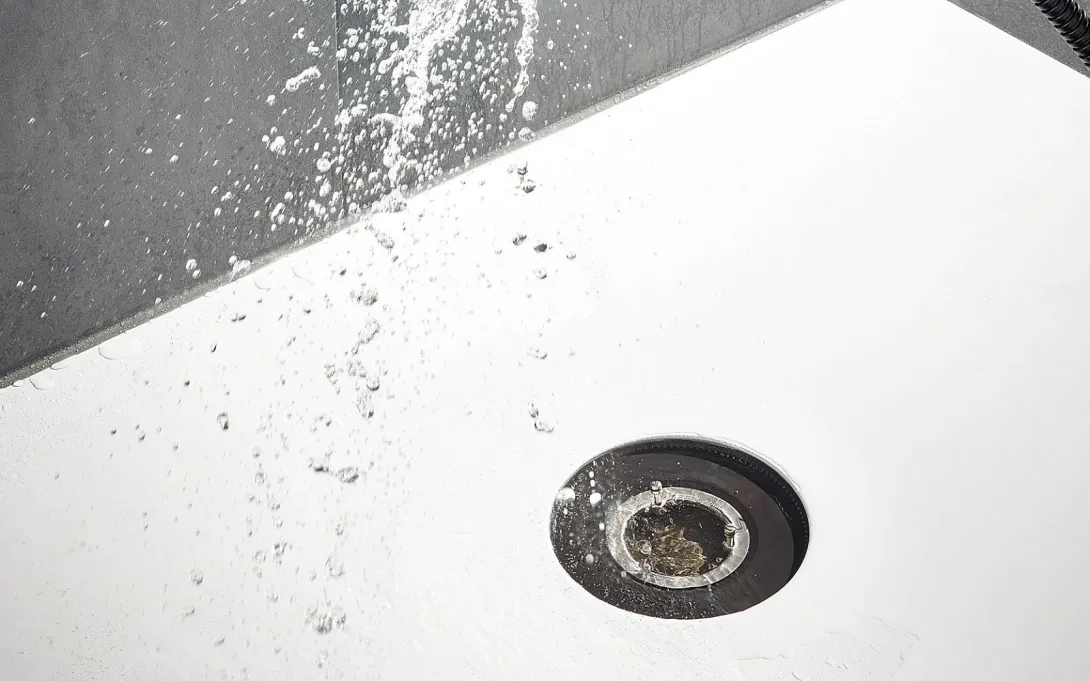 Für einen optimalen Abfluss wurde der Ablauf auf 200 mm vergrößert. Die kreisrunde Form und der 3 mm feine Spalt verleihen dem Ablauf ein dezentes Äußeres. Er ist inmitten der hochwertigen Oberfläche eingearbeitet und absolut plan. Dadurch ist sowohl haptisch als auch optisch kein Unterschied zur restlichen Duschfläche spür- oder sichtbar. Dank der hohen Ablaufleistung von 0,6 l/s sind selbst opulente Regenduschen kein Problem. Auch bei der Reinigung überzeugt der Abfluss mit cleverer Technik. Eine selbstreinigende Ablaufgarnitur schützt den Ablauf sowie das dahinterliegende Rohrsegment effizient vor Haaren und Fusseln. Sollten sich dennoch mal Schmutzrückstände ansammeln, kann der Ablauf zur Reinigung einfach herausgenommen werden.