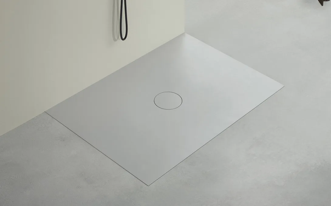 Der Name Duschfliese kommt nicht von ungefähr: Die minimale Rand­höhe (10 mm) sowie der Eck­radius von nur 5 mm passen perfekt ins Fliesen­raster. Der hoch­wertige Titan-Stahl verleiht der Dusch­fläche trotz filigraner Aus­arbeitung be­eindruckende Stabilität: Die kratzfeste Ober­fläche ist härter als Marmor, Kunststoff oder Mineralguss.
