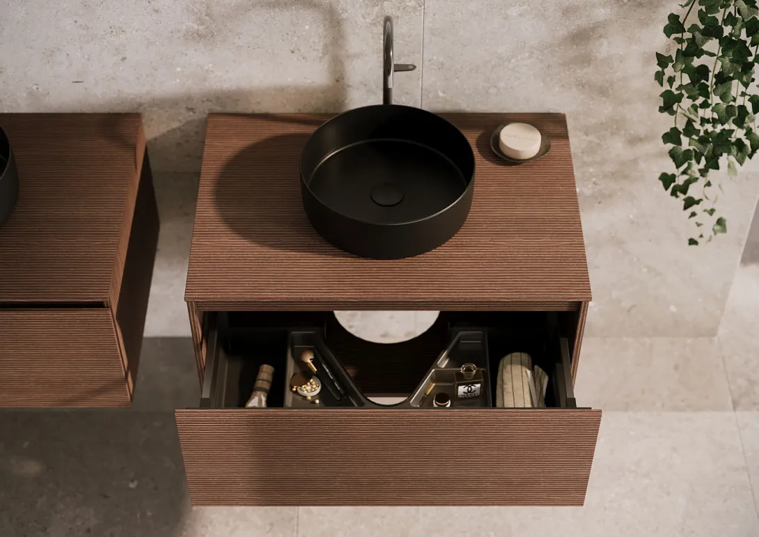 Händewaschen, Zahnhygiene und Make-up, aber auch Ablage­fläche und Aufbewahrungsort: Der Wasch­platz ist das Herz des Bade­zimmers. Deshalb gebührt ihm besondere Aufmerksam­keit, wenn es darum geht, Funktionalität und Optik mit dem Gesamt-Design des Bades in Ein­klang zu bringen.