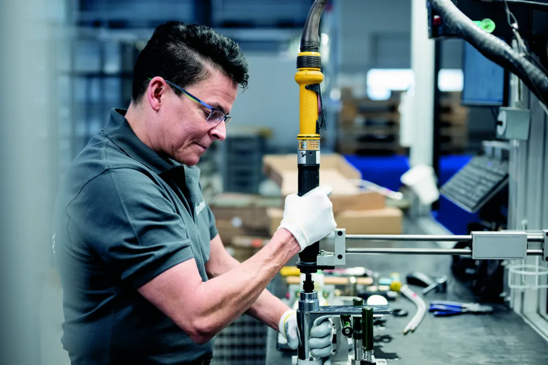 Ein Mitarbeiter fertigt eine Armatur der Kollektion Dornbracht Recrafted.