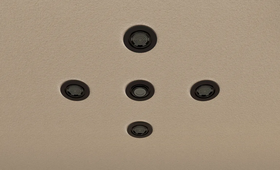Waterdot eröffnet neue Spielräume für individuelles Duschdesign. Das Duschsystem besteht aus einer Reihe von Duschköpfen mit kleinem Durchmesser, die sich miteinander kombinieren lassen. Vier Strahlarten – Regen, Laminar, Nebel und Mikado – sorgen dabei für ein unvergleichliches Duscherlebnis.