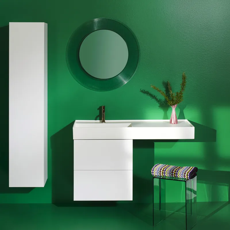 Für die Serie Kartell by LAUFEN haben das italienische Designunternehmen Kartell und die Schweizer Badmarke LAUFEN sich dieses Unterschieds angenommen und ein Bad-Ensemble kreiert, das sich unterschiedlichen Lebensphasen und Lifestyles mühelos anpassen lässt. Die Kollektion bietet alle Möglichkeiten, mit Farben und Lichtstimmungen zu spielen, ohne sich jedoch dauerhaft auf das Ambiente festlegen zu müssen.