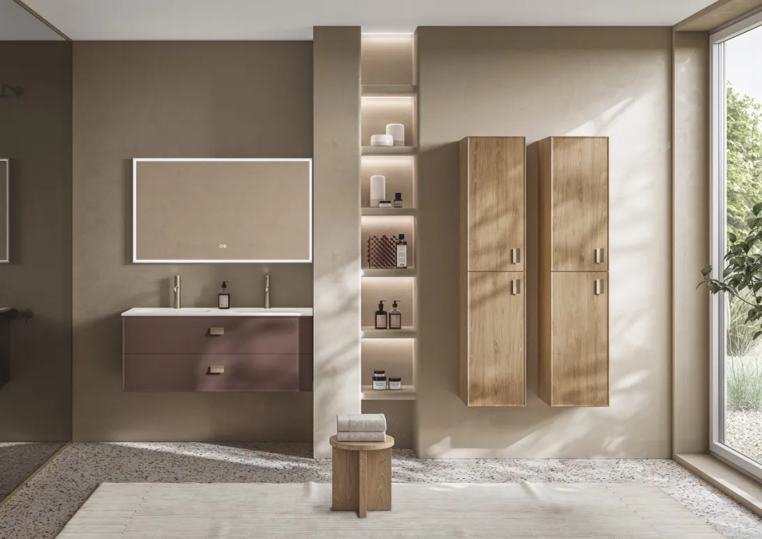 • Integrierte Waschbecken in Keramik oder Mineralmarmor