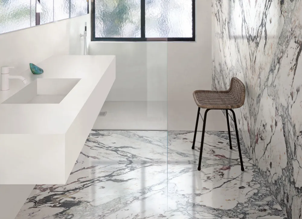 Beim Marble Look übertrifft die gestochen scharfe und nachhaltige Qualität der Äderungen und Schattierungen der edelsten und seltensten Marmore fast schon das Original. Statten Sie Ihr Badezimmer oder Ihre Wohnräume in Marmoroptik aus und genießen sie die zeitlose Eleganz.