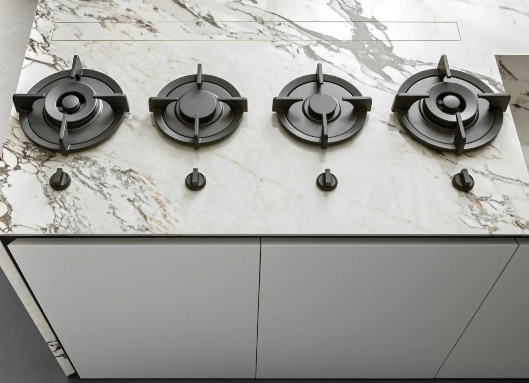 Die Optik des Steins zeichnet sich durch eine ursprüngliche Schönheit aus. Beim Stone Look von Grande trifft sie auf die Widerstandsfähigkeit des Feinsteinzeugs. Ob Ceppo di Gré, Gris du Gent, Granito Black oder Pietra di Vals wie hier im Bild: Mit Stone Look holen Sie sich harmonische Eleganz in Küche oder Wohnraum.